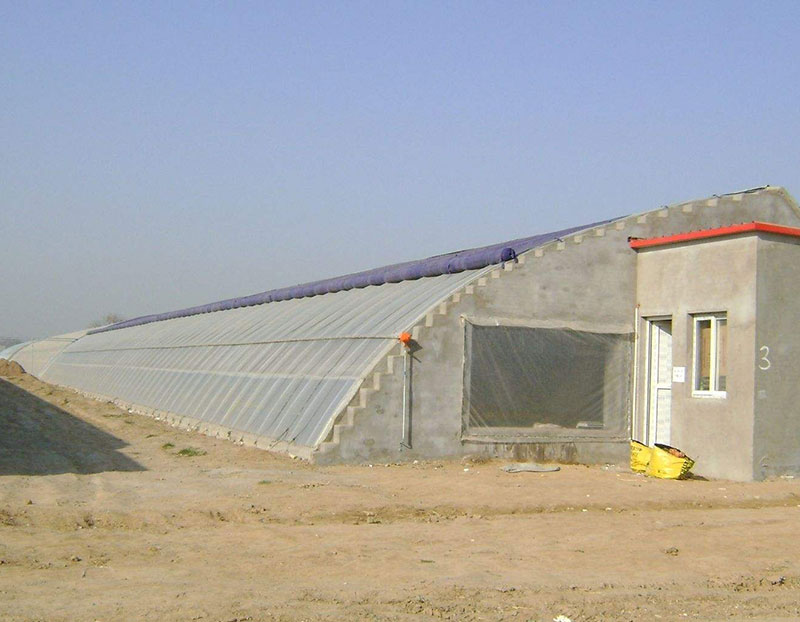 前坡面夜間用保溫被覆蓋,東、西、北三面為圍護(hù)墻體的單坡面塑料溫室,統(tǒng)稱為日光溫室。其雛型是單坡面玻璃溫室,前坡面透光覆蓋材料用塑料膜代替玻璃即演化為早期的日光溫室。日光溫室的特點(diǎn)是保溫好、投資低、節(jié)約能源,非常適合我國經(jīng)濟(jì)欠發(fā)達(dá)農(nóng)村使用。